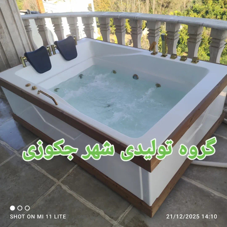 گروه تولیدی شهر جکوزی بزرگترین تولیدکننده وان جکوزی های فایبرگلاس و ورق آکریلیک موتور 1/5 اسب اورجینال دو عدد جت کمری چهار عدد جت دور شیرالات ۵تیکه طلایی هالوژن هفت رنگ کنترلی ورق آکریلیک ترک ۸ میل اورجینال فوق براق دستگیره طلایی سیفون پدالی طلایی بالشتک پایه دار طلایی دو عدد چوب نما بالا پایین پاخور ترمو فنلاند محافظ جان شاسی استیل پنل طولی یک عدد پنل عرضی یک عدد